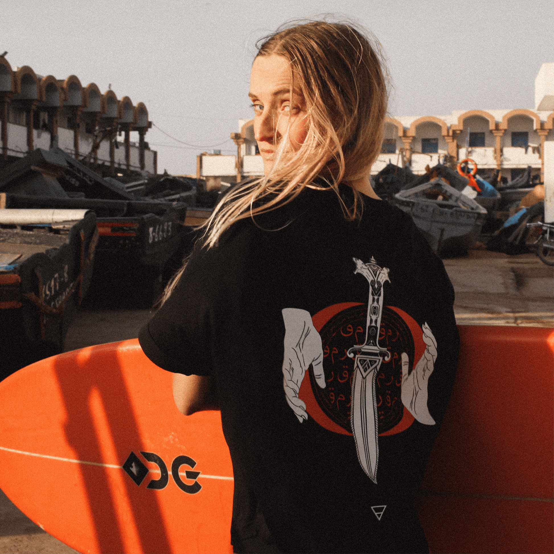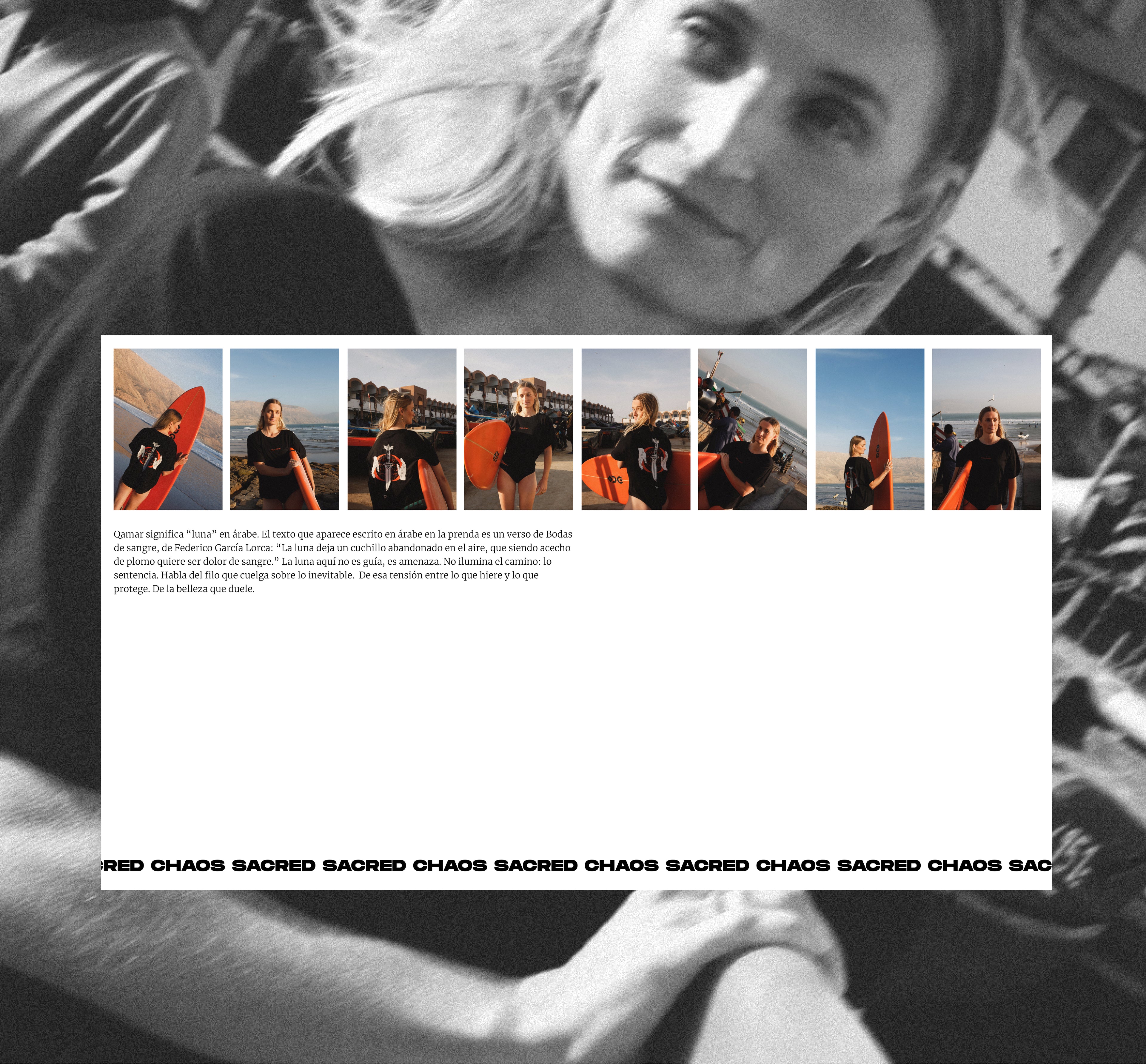 El texto en árabe en la prenda es un verso de Bodas de Sangre, de Lorca: